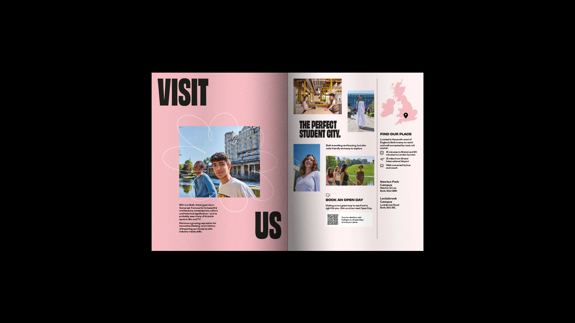 Redesign of the student recruitment campaign for Bath Spa University, including Undergraduate Guide, campaign videos and DOOH advertising.